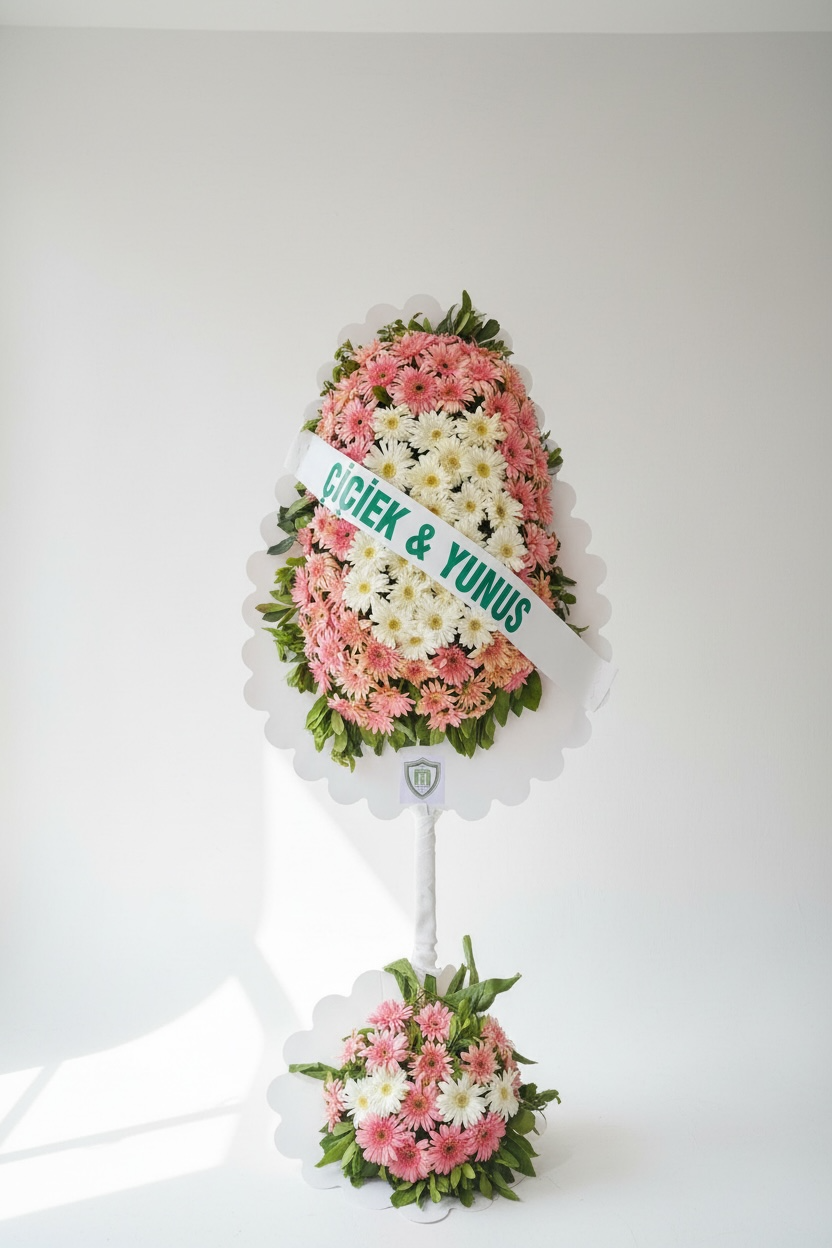 Pembe ve Beyaz Gerbera Çelenk: Bahar Tazeliğini Evinize Taşıyın